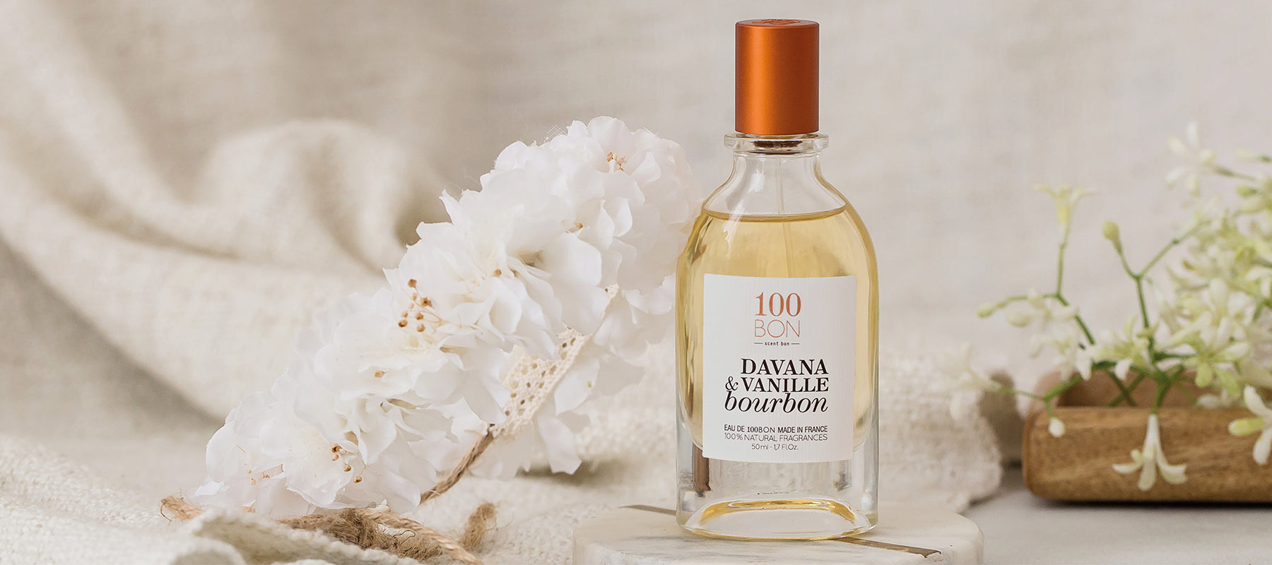 100BON to marka młoda nie tylko w Polsce. Założono ją w 2017 we francuskim Lyonie jako pierwszy dom perfumeryjny w 100% oddany naturalnym składnikom. Miłość do natury i prostoty w duchu eco widać już na pierwszy rzut oka – proste tekturowe pudełka, proste szklane flakony, proste graficzne etykiety oraz lniane woreczki.